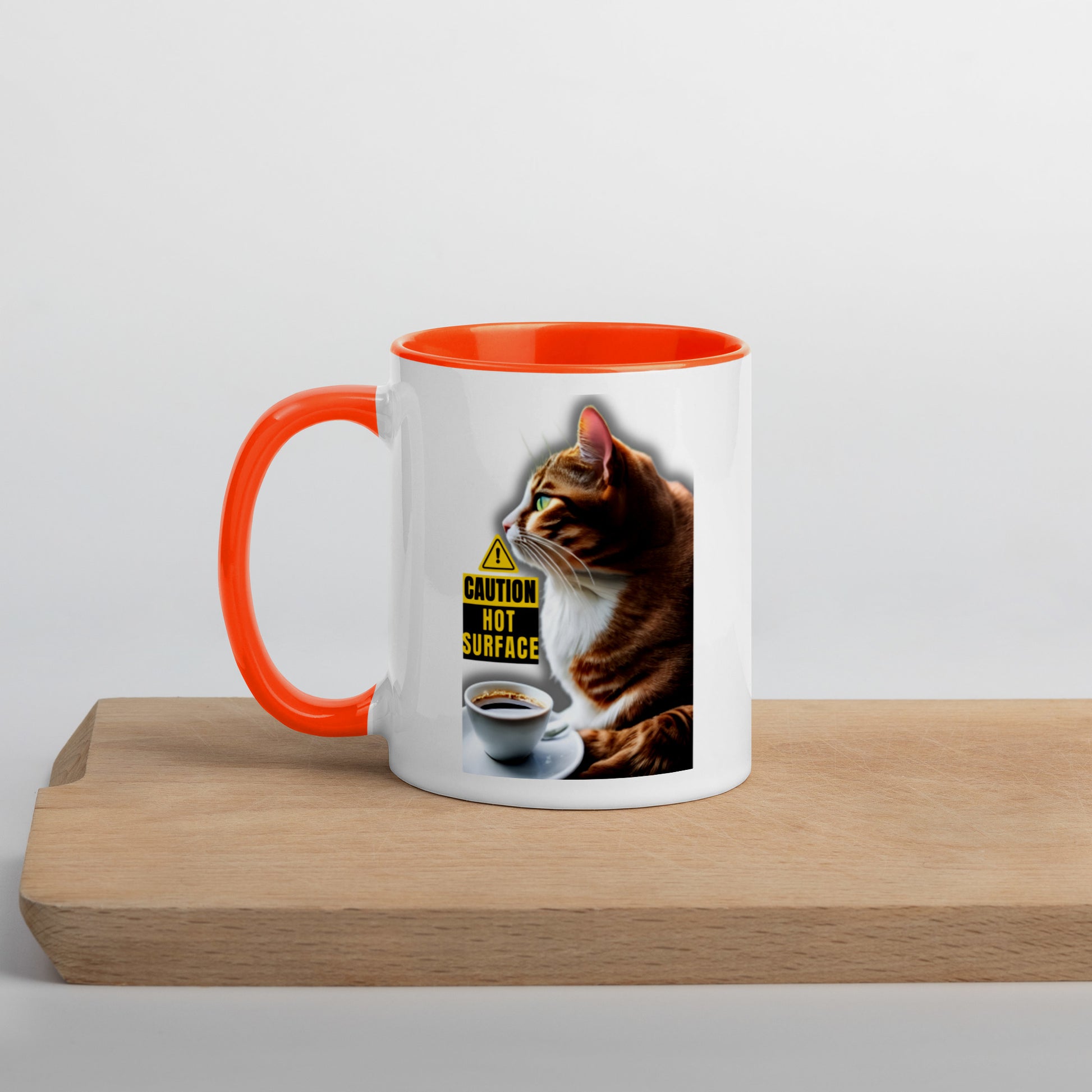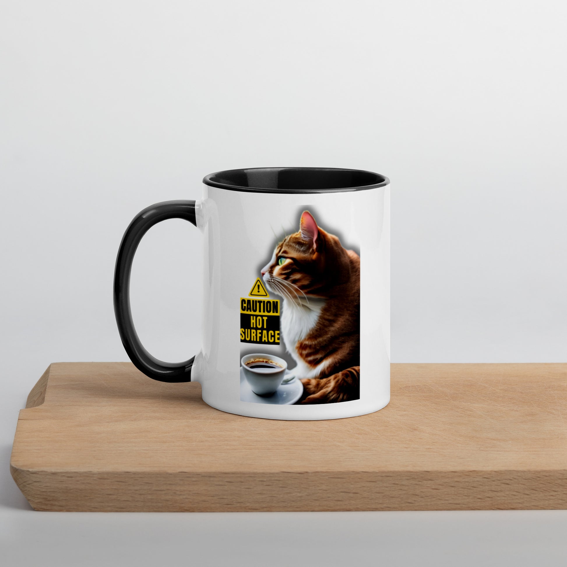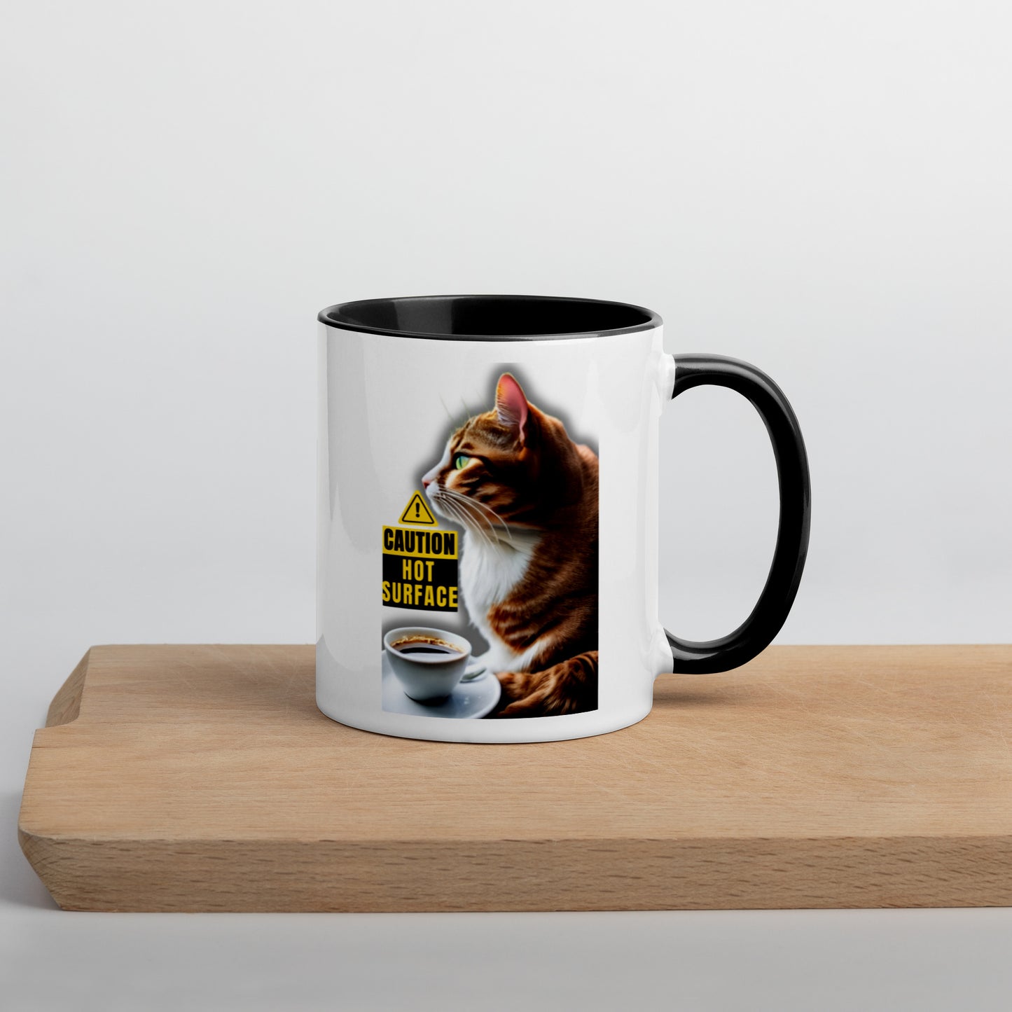 With a colorful inside, rim and handle, our bright and uplifting "Cautious Kitty" mug is a favorite amongst our customers. Choose between vibrant color options and enjoy your hot beverage in style!