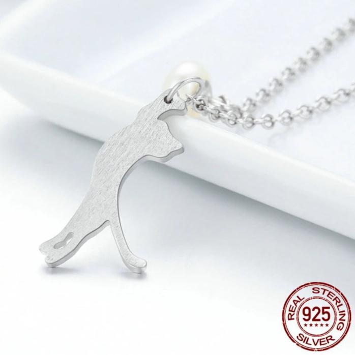 - Size: The sterling silver cat necklace measures 0.9x2.2cm in size, paired with a 0.6x0.8cm pearl. Additionally, the necklace weighs 2.9g and comes with a 38-45cm long chain.